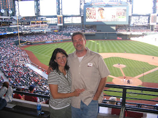 Chase field has always been a great place to watch a ball game. This years addition of a HUGE “video monitor” that is the widest in the major leagues, measuring 136 feet wide by 46 feet high, or about eight times the size of the “old” screen makes it even better. Throw in a luxury suite, right behind home plate stashed with all kinds of great food and refreshments and you have yourself a pretty decent day. If you want to add to the fun, turn on the plasma tv by one of the big cushy chairs and watch a golf tournament at the same time! Not just any tournament but the one played in Augusta Georgia. You may have heard of it? Yep, it’s called The Masters. Guys, it is hard to beat a Sunday like this! 🙂 Lori and I had a great time with some very good friends!